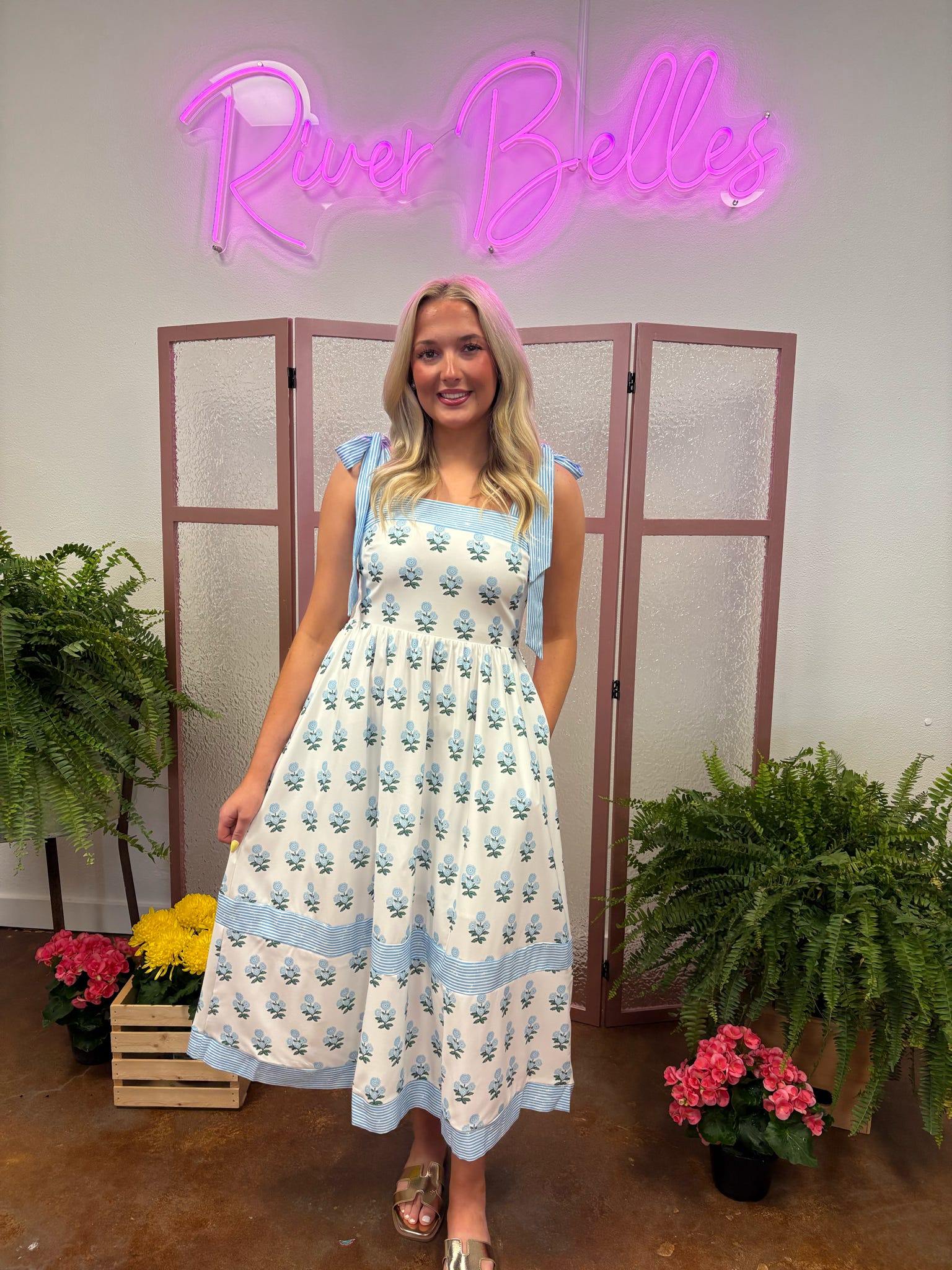 Coastal Chic Gingham Babydoll Maxi Dress