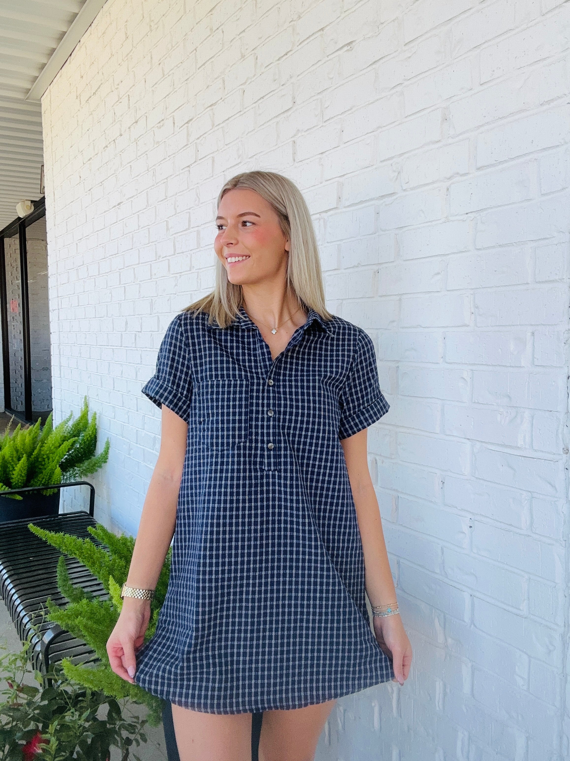 Shay Seersucker Plaid Easy Shirt Mini Dress