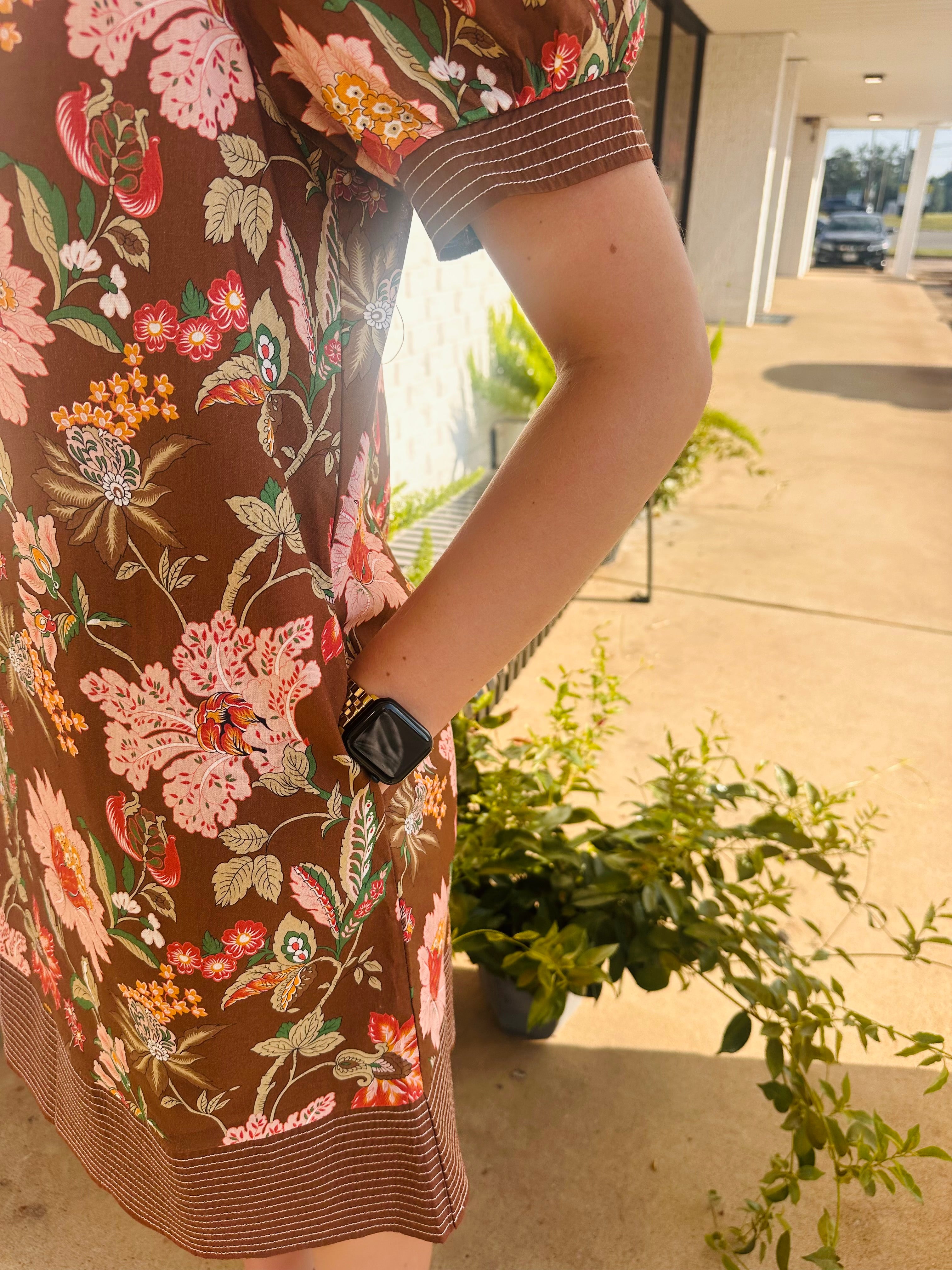 Arlet Floral Short Puff Sleeve Accent Band Mini Dress