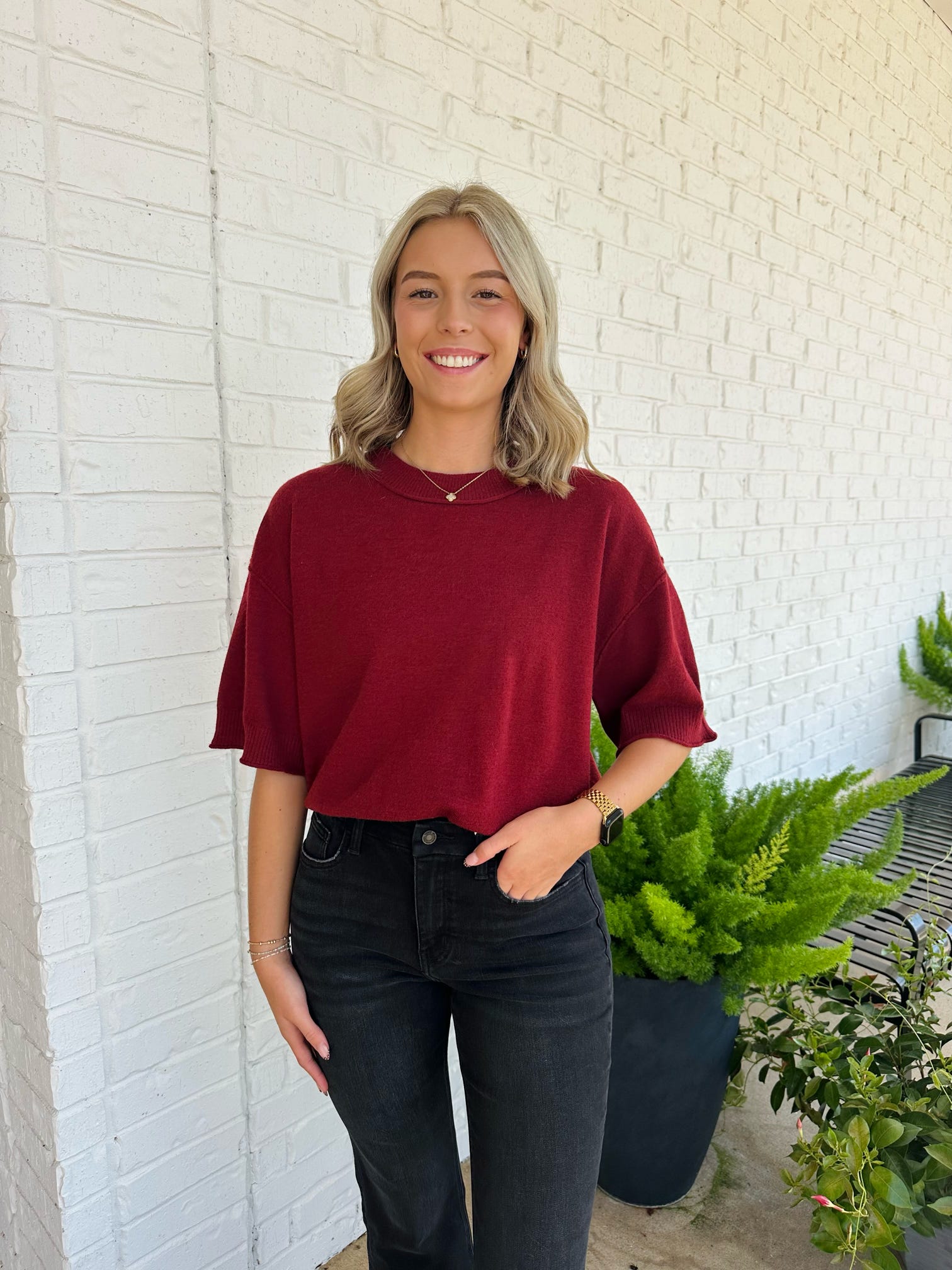Mona Solid Short Wide Sleeve Pullover Sweater