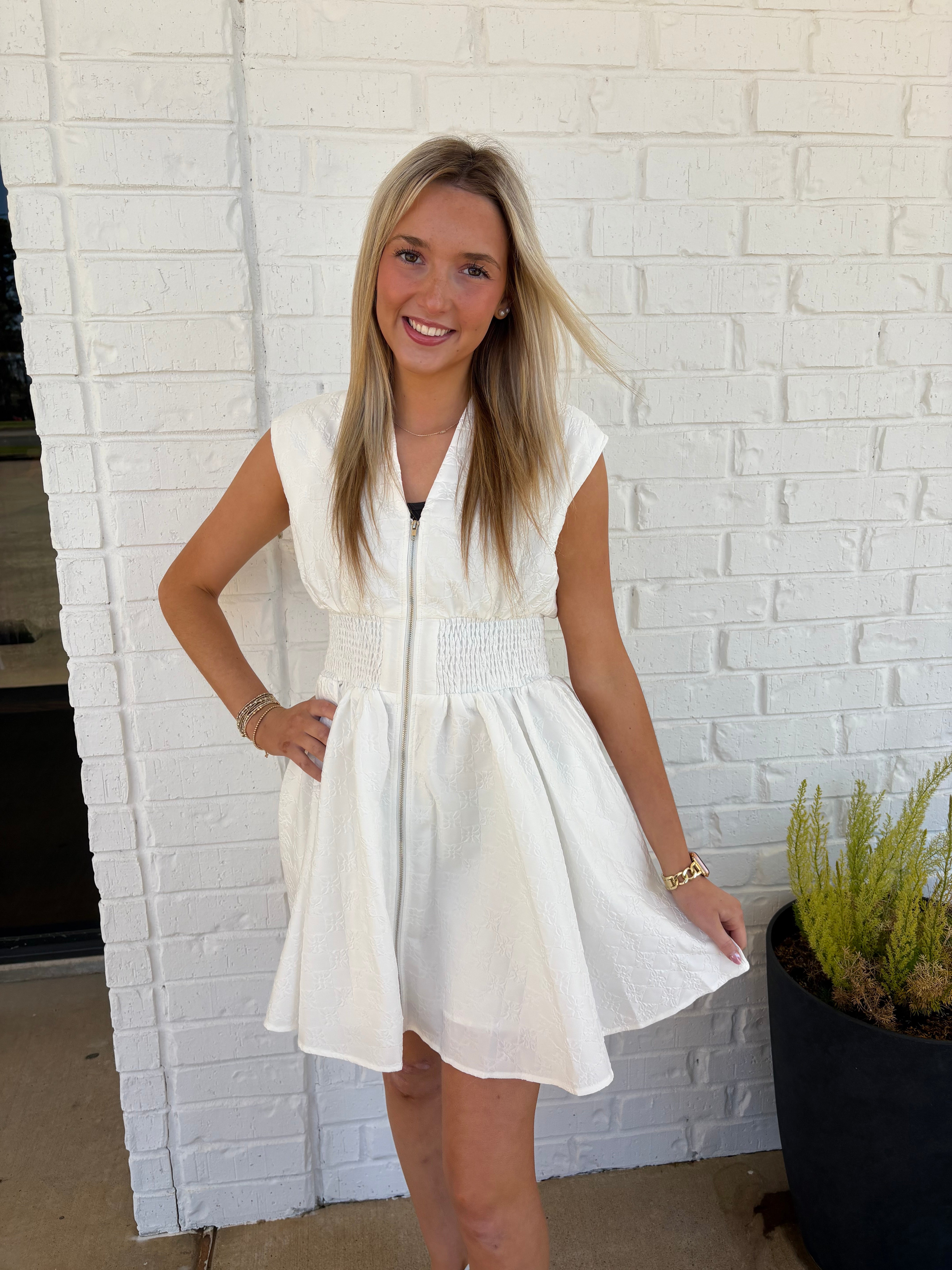 Zip Front Sleeveless Rouched A Line Mini Dress