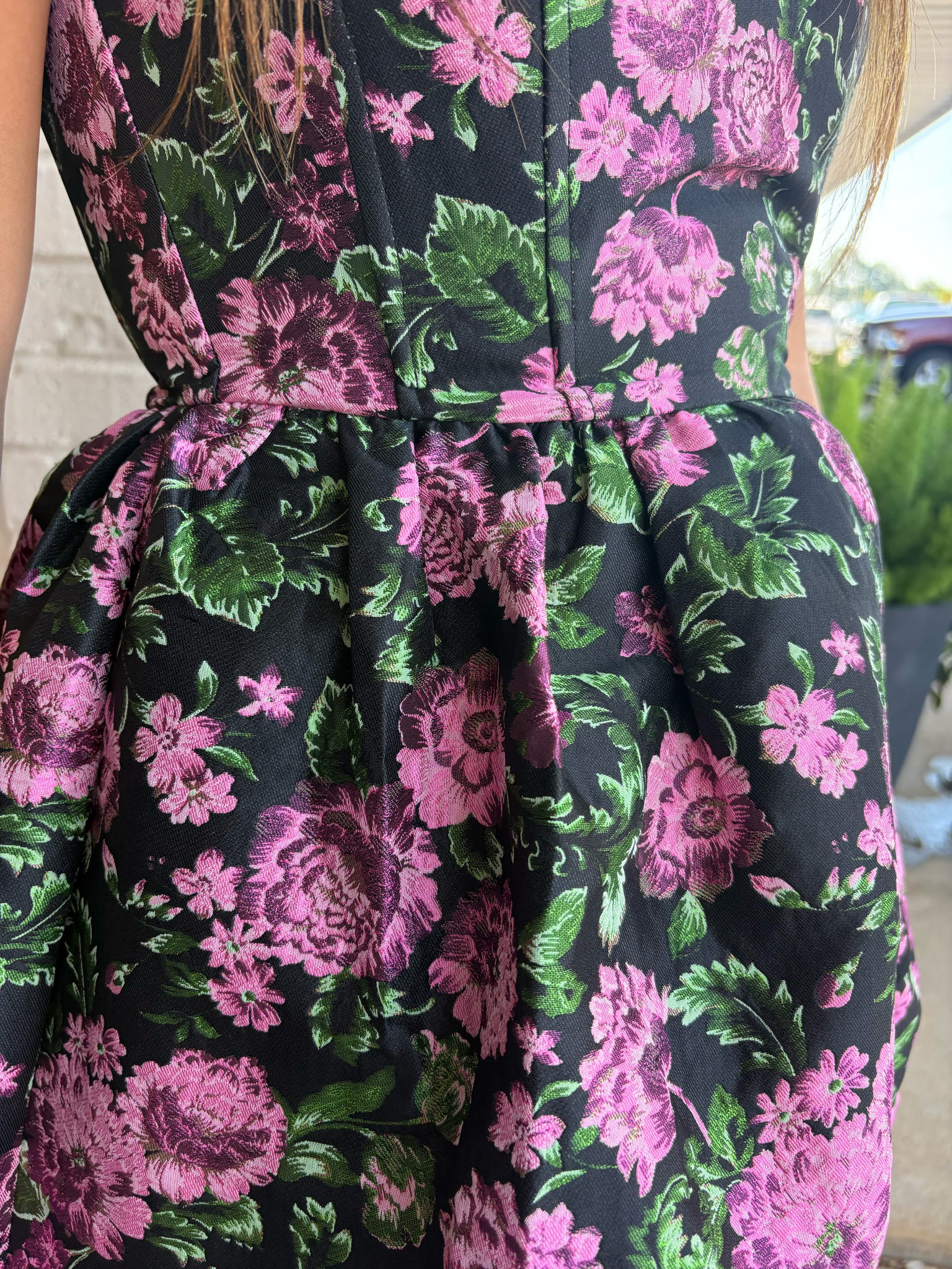 Floral Bouquet V Neck 3/4 Puff Sleeve Mini Dress