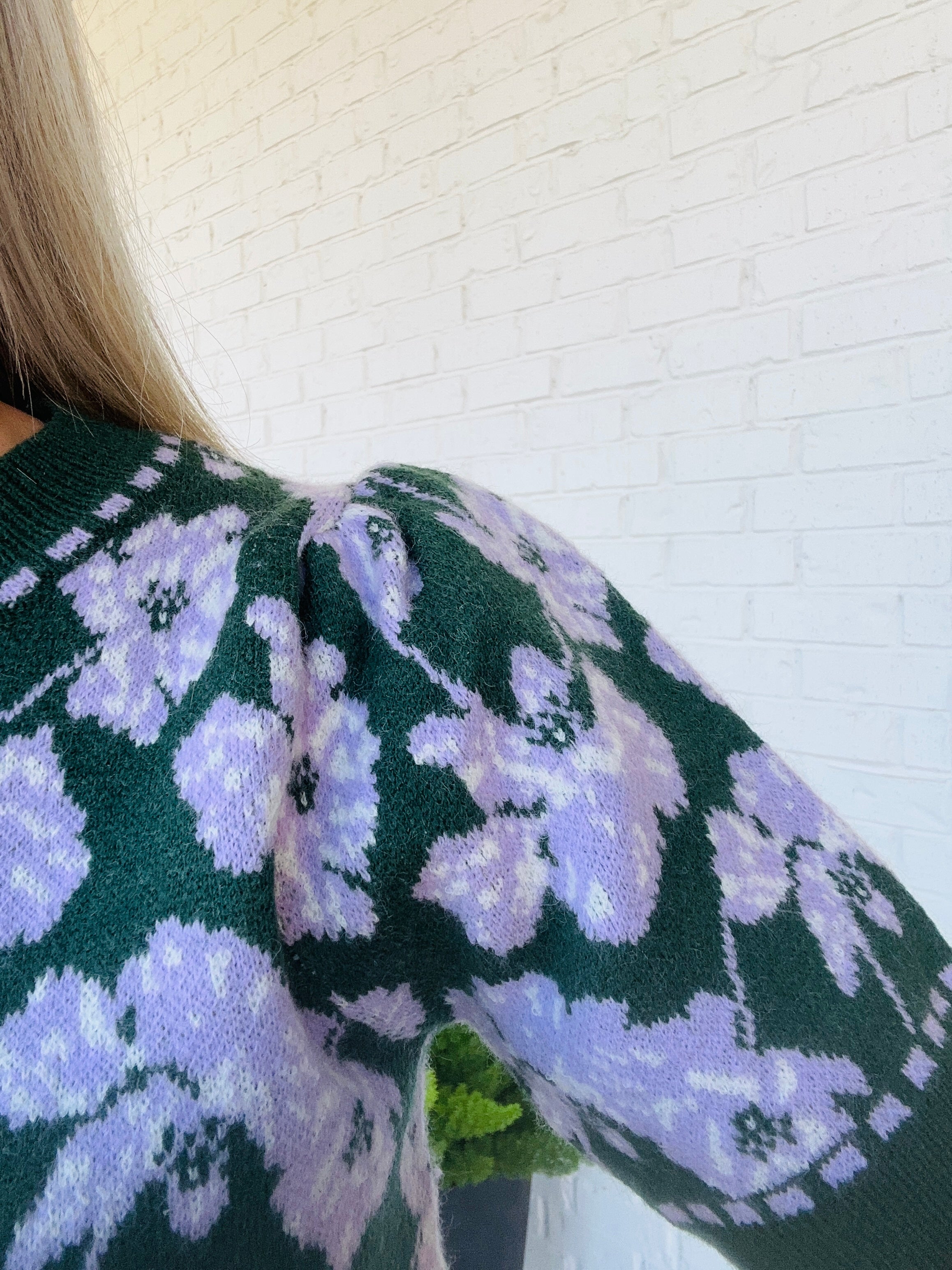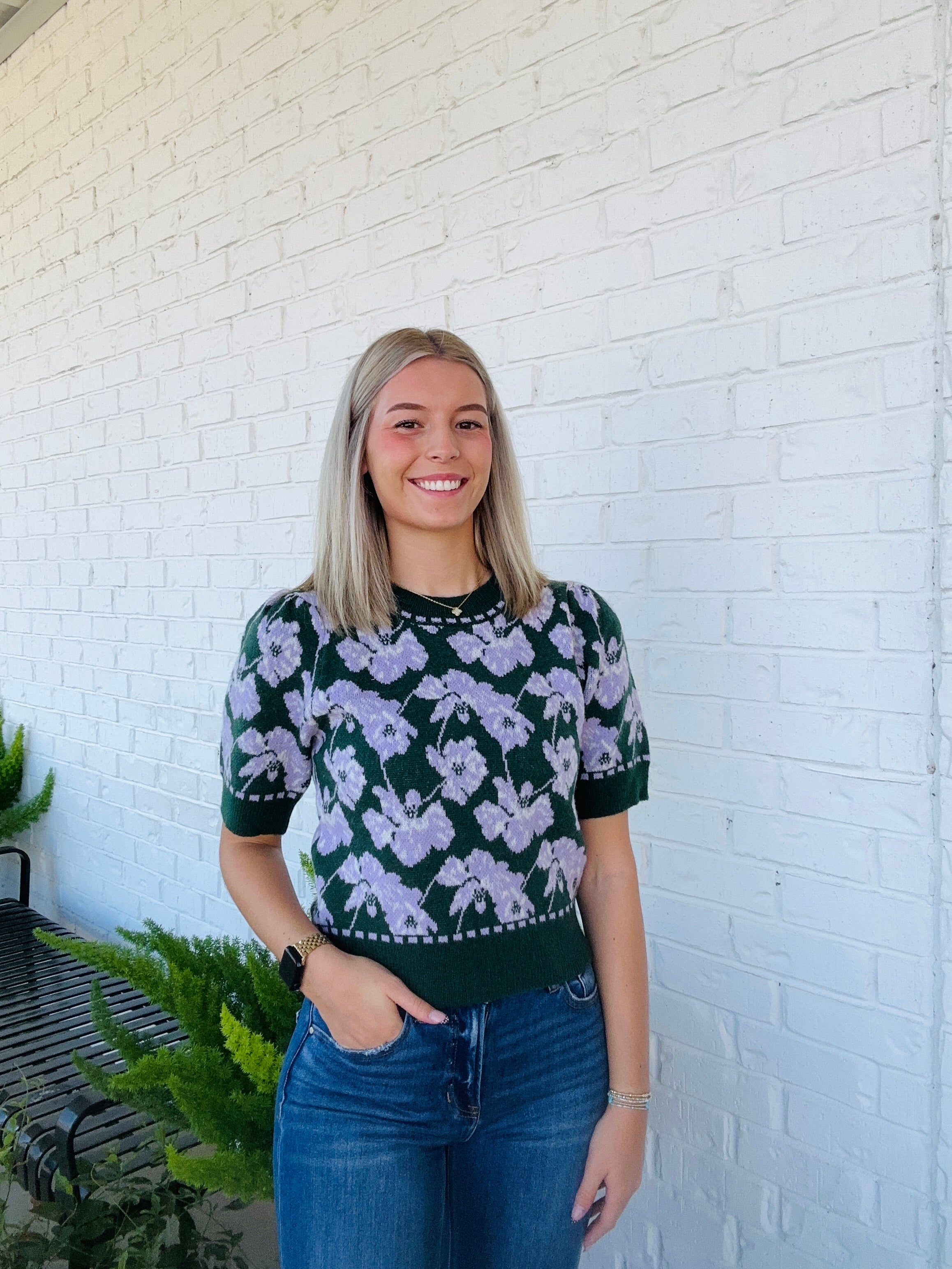 Francine Floral Short Puff Sleeve Crewneck Sweater