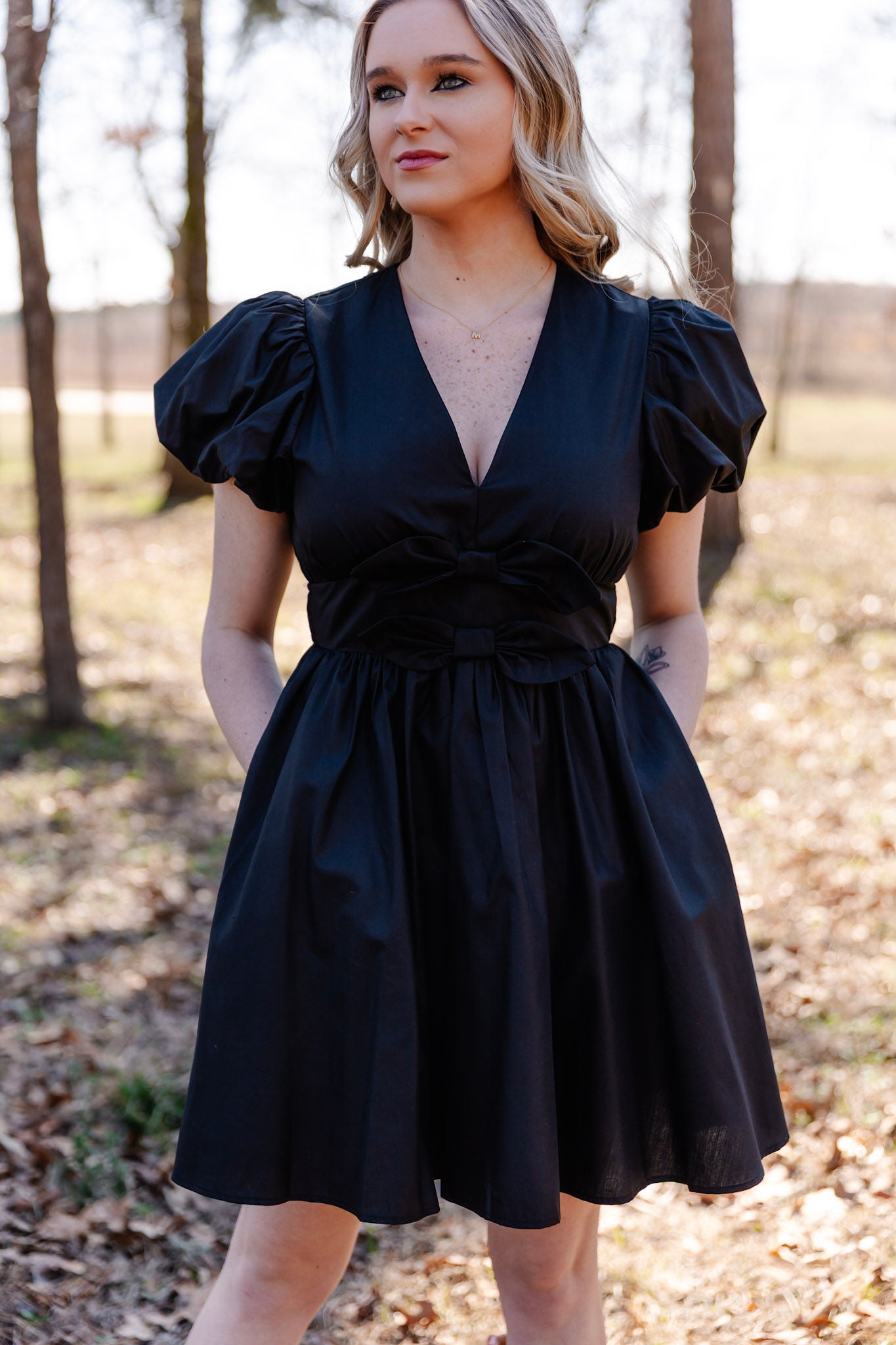 Sia V Neck A line Mini Dress With Bows