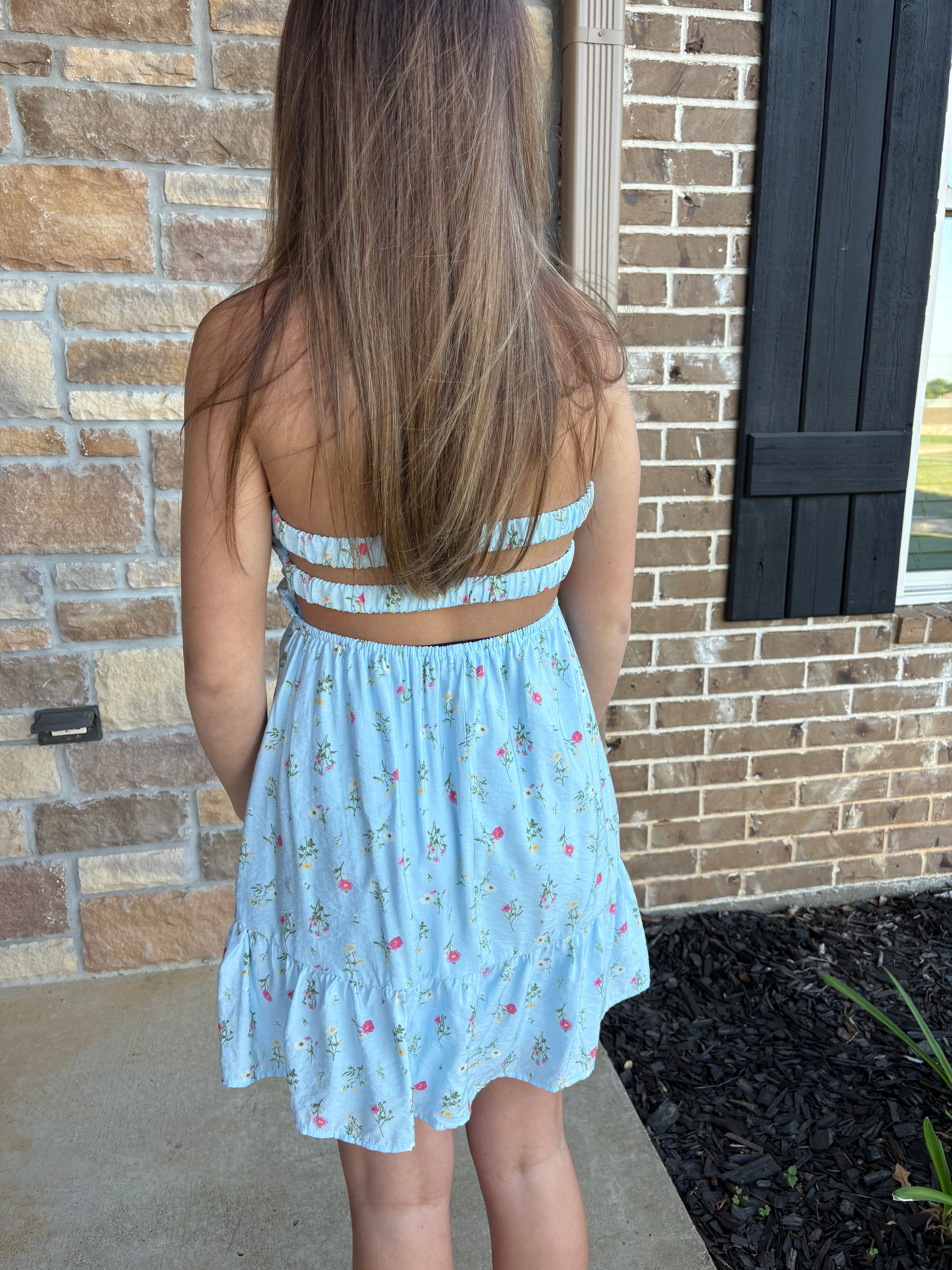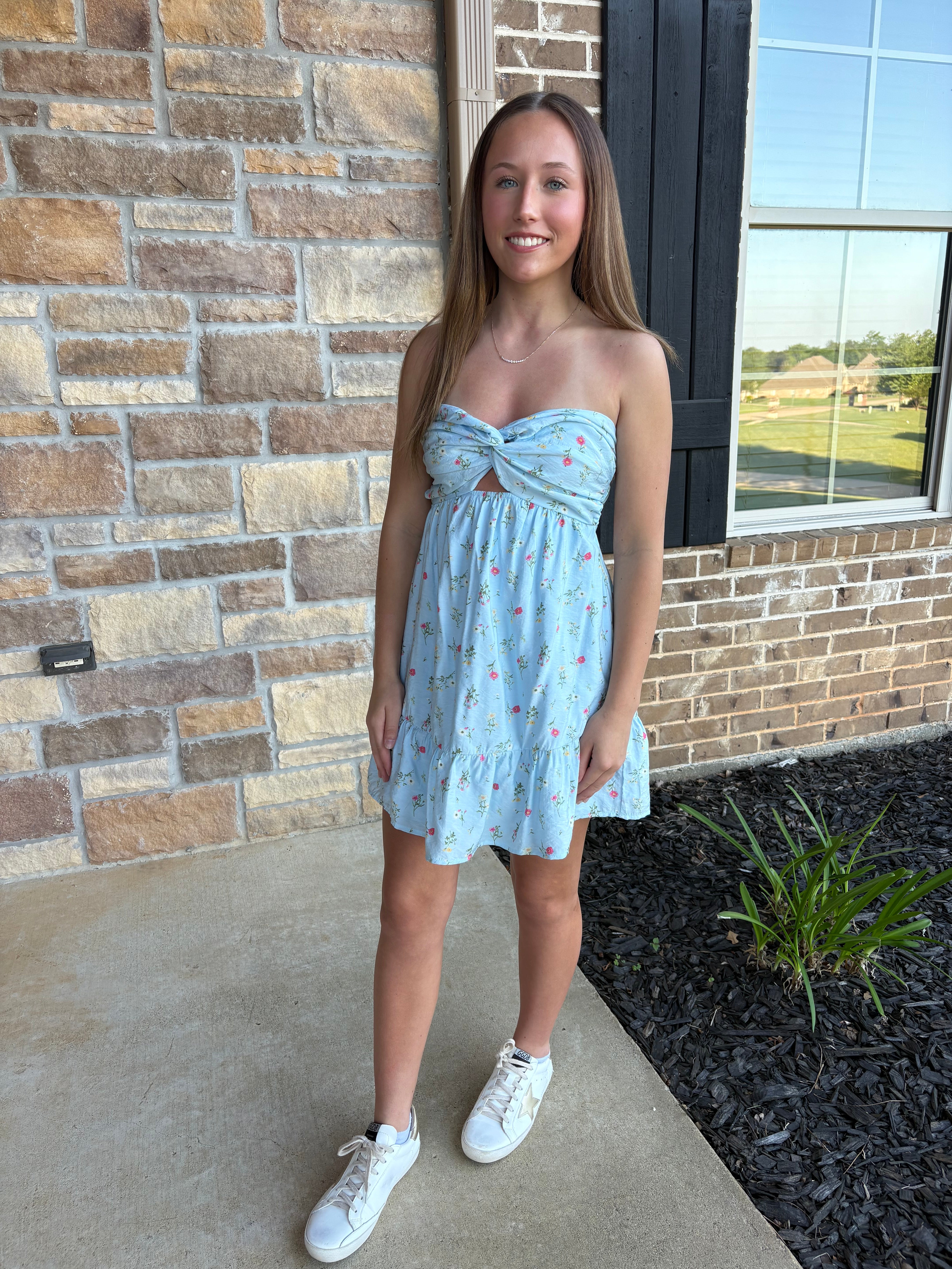 Pick Me Floral Twist Cut Out Tube Mini Dress