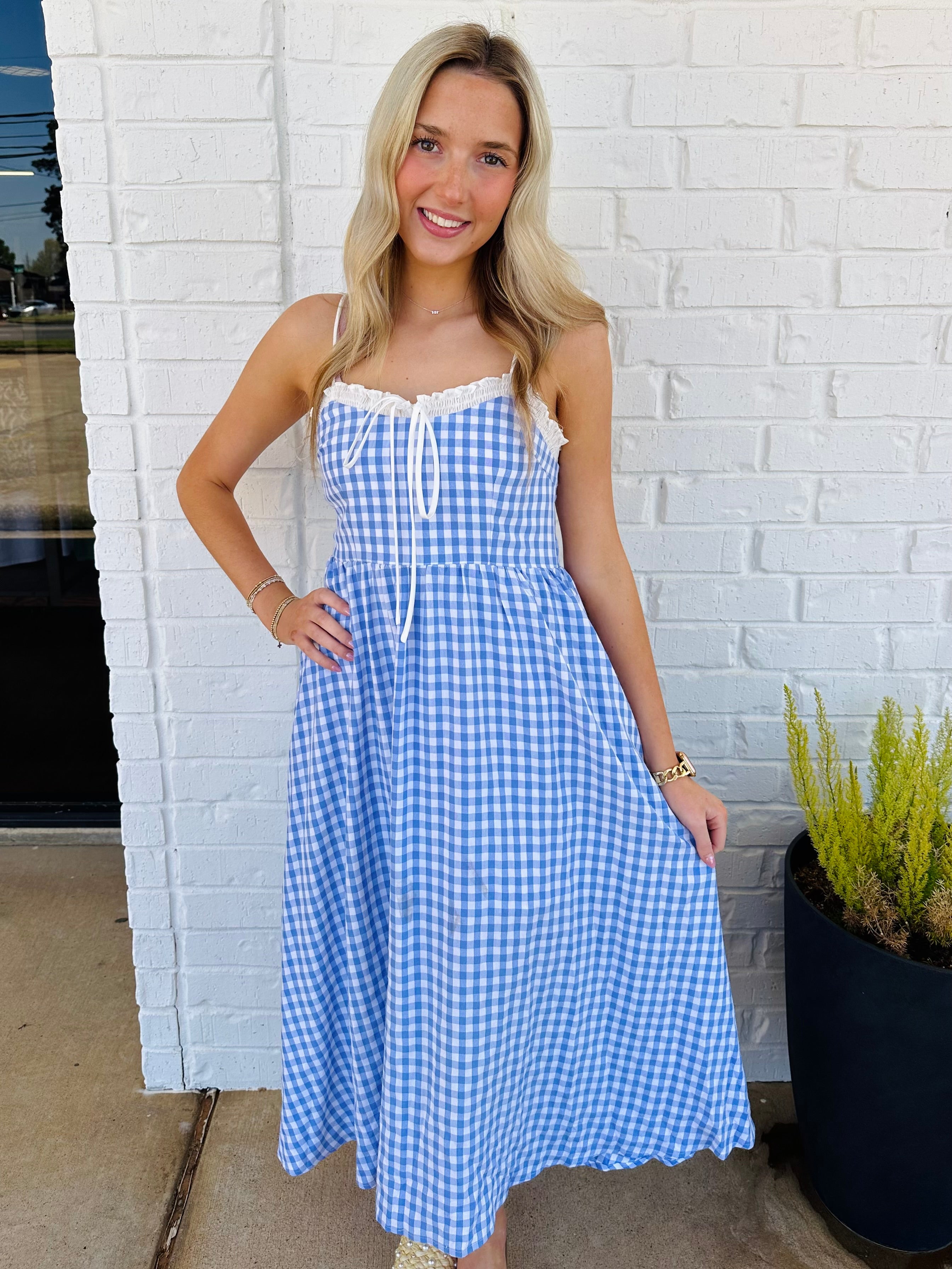 Coastal Chic Gingham Babydoll Maxi Dress