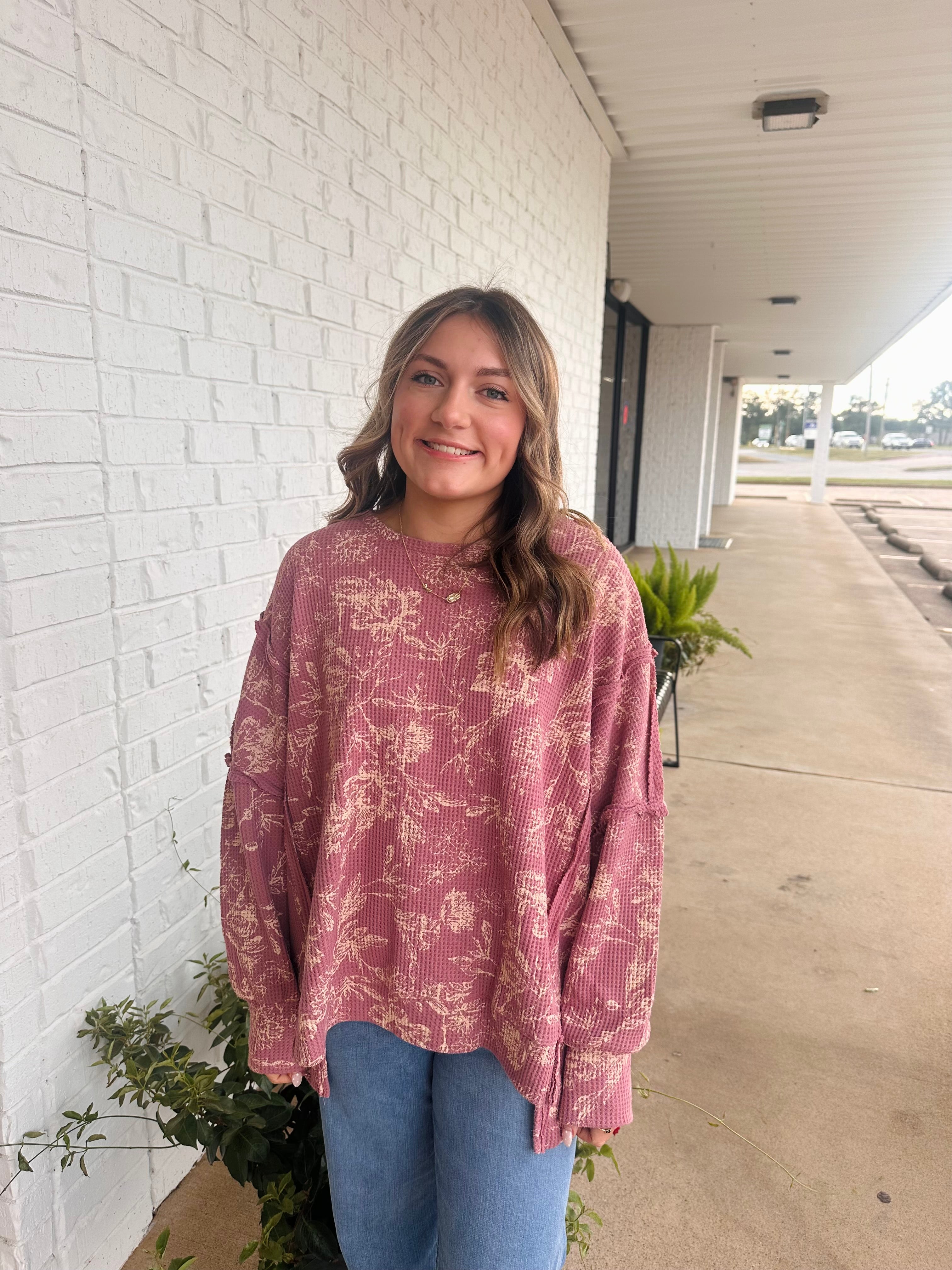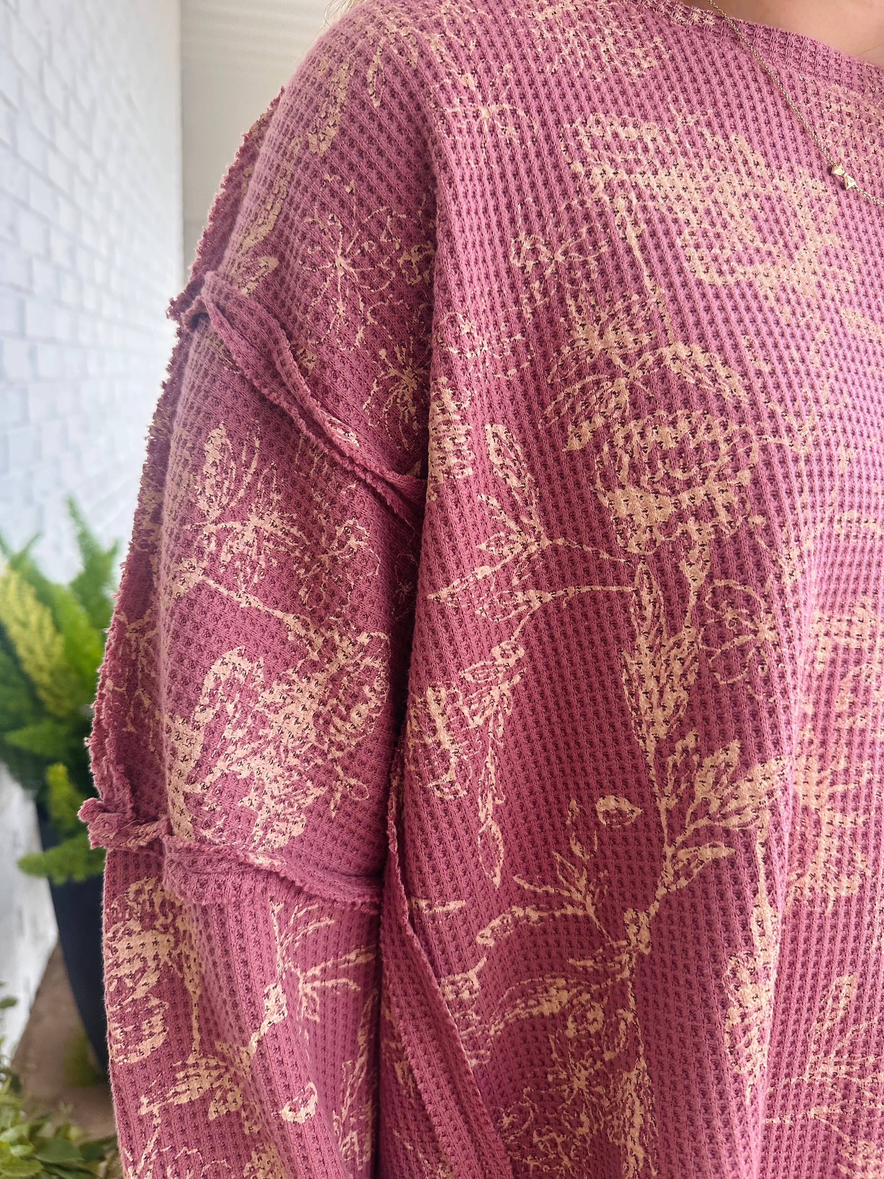 Floral Print Waffle Sweatshirt