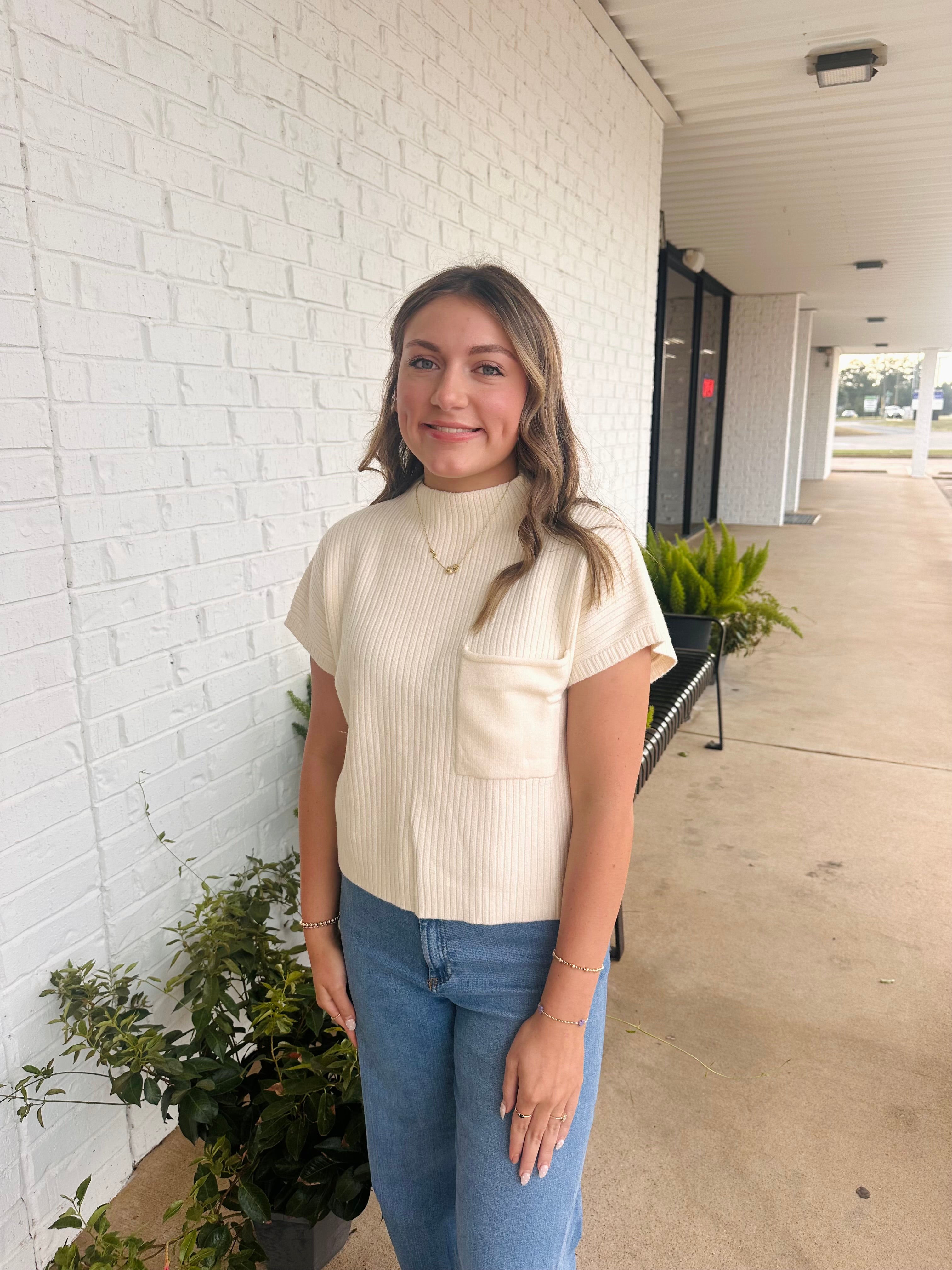 Macy Mock Neck Pocket Top