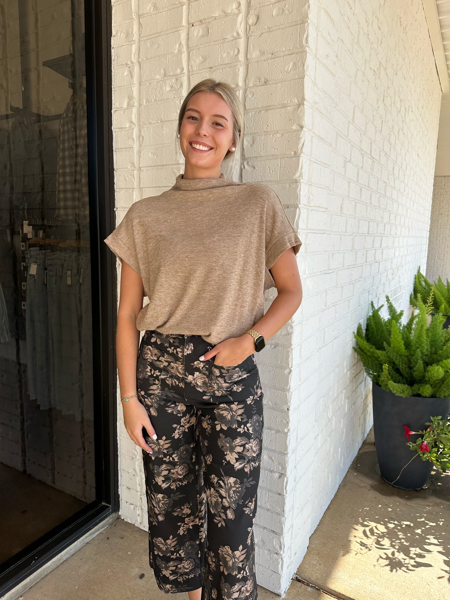 Ember Mock Neck Ribbed Short Sleeve Top