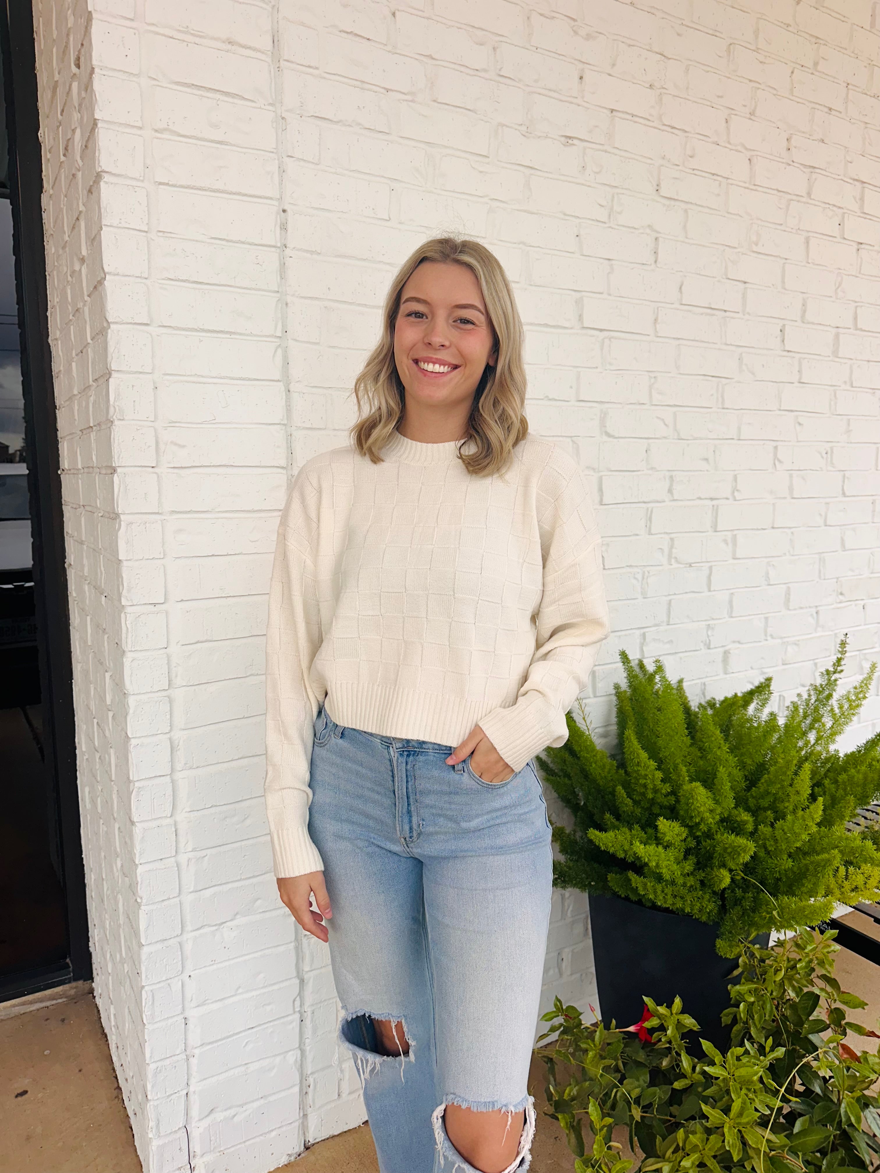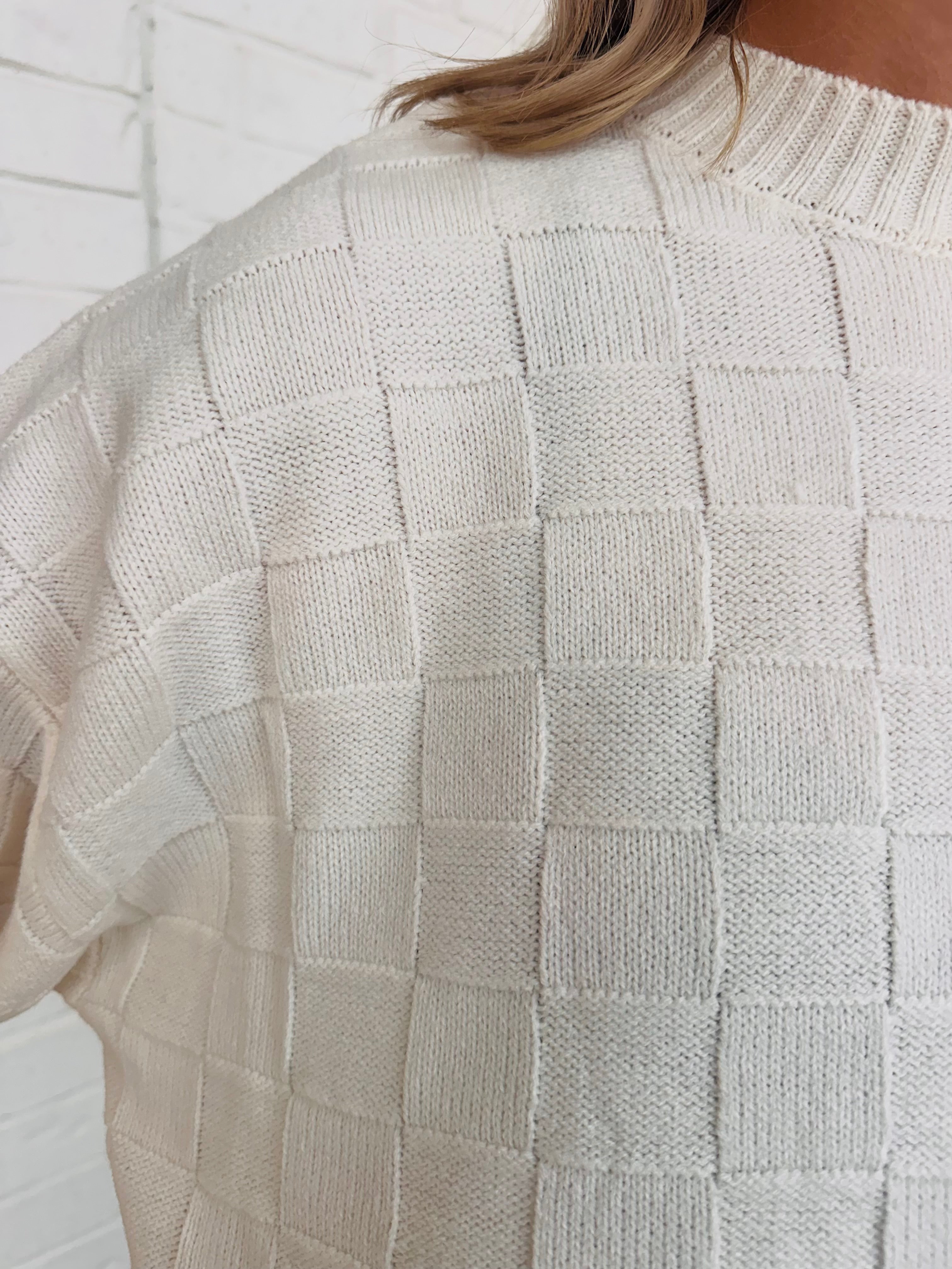 Cassie Crew Neck Monotone Checkerboard Sweater