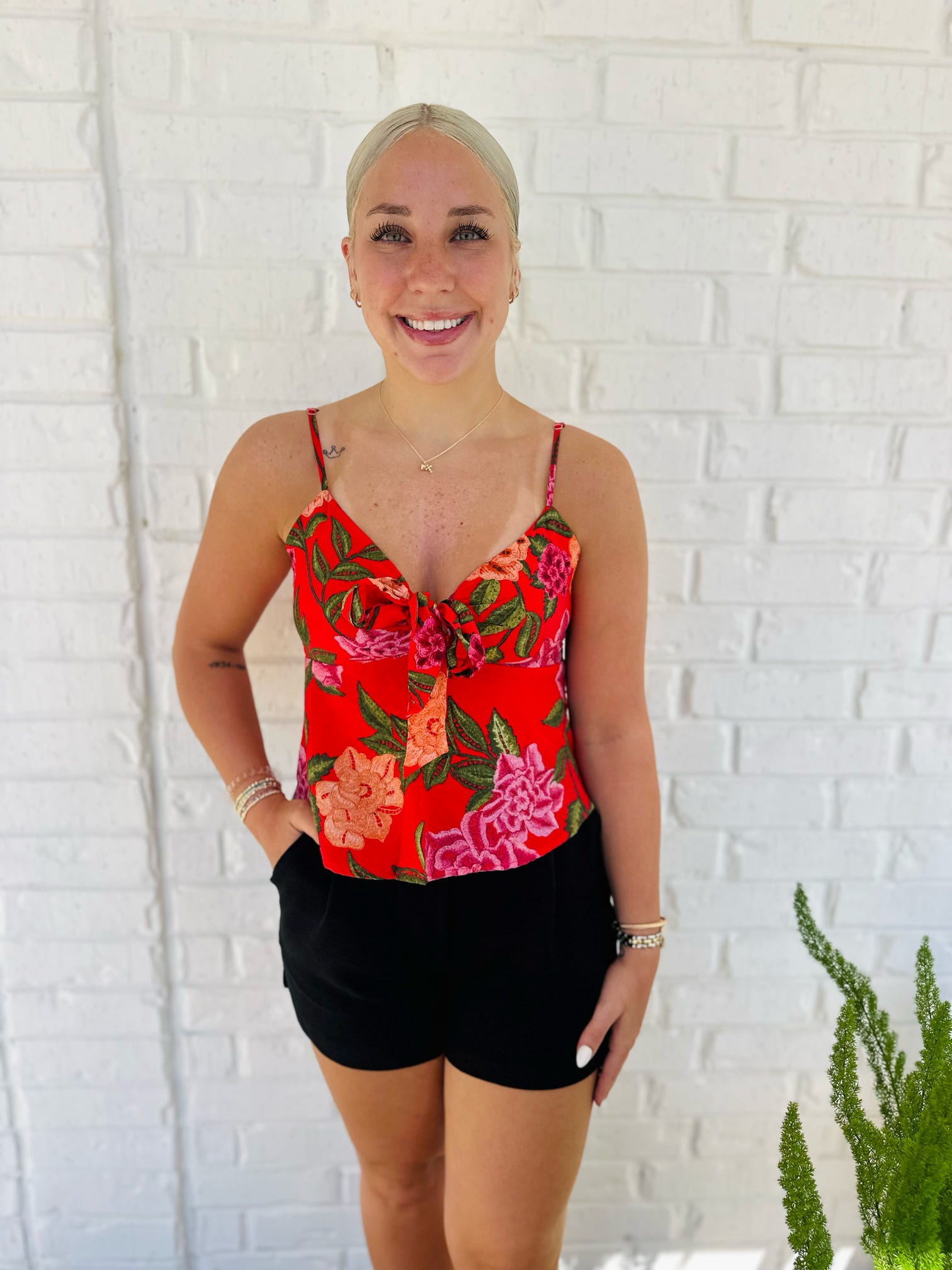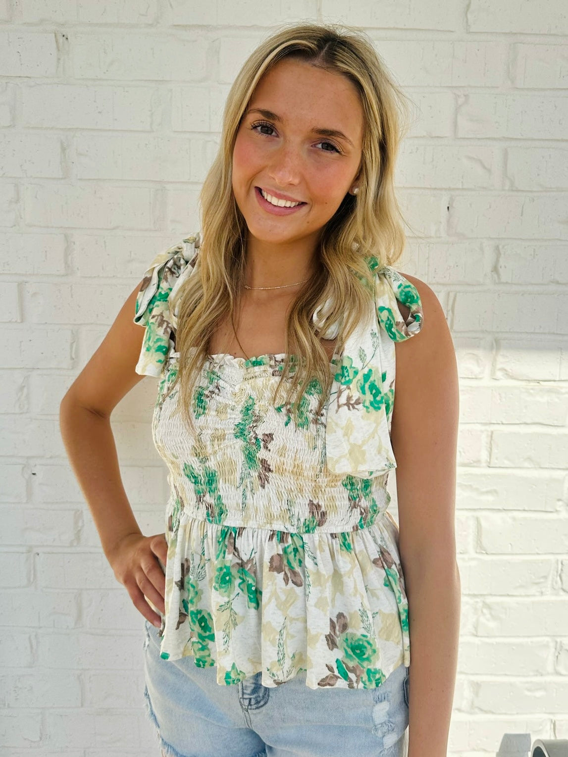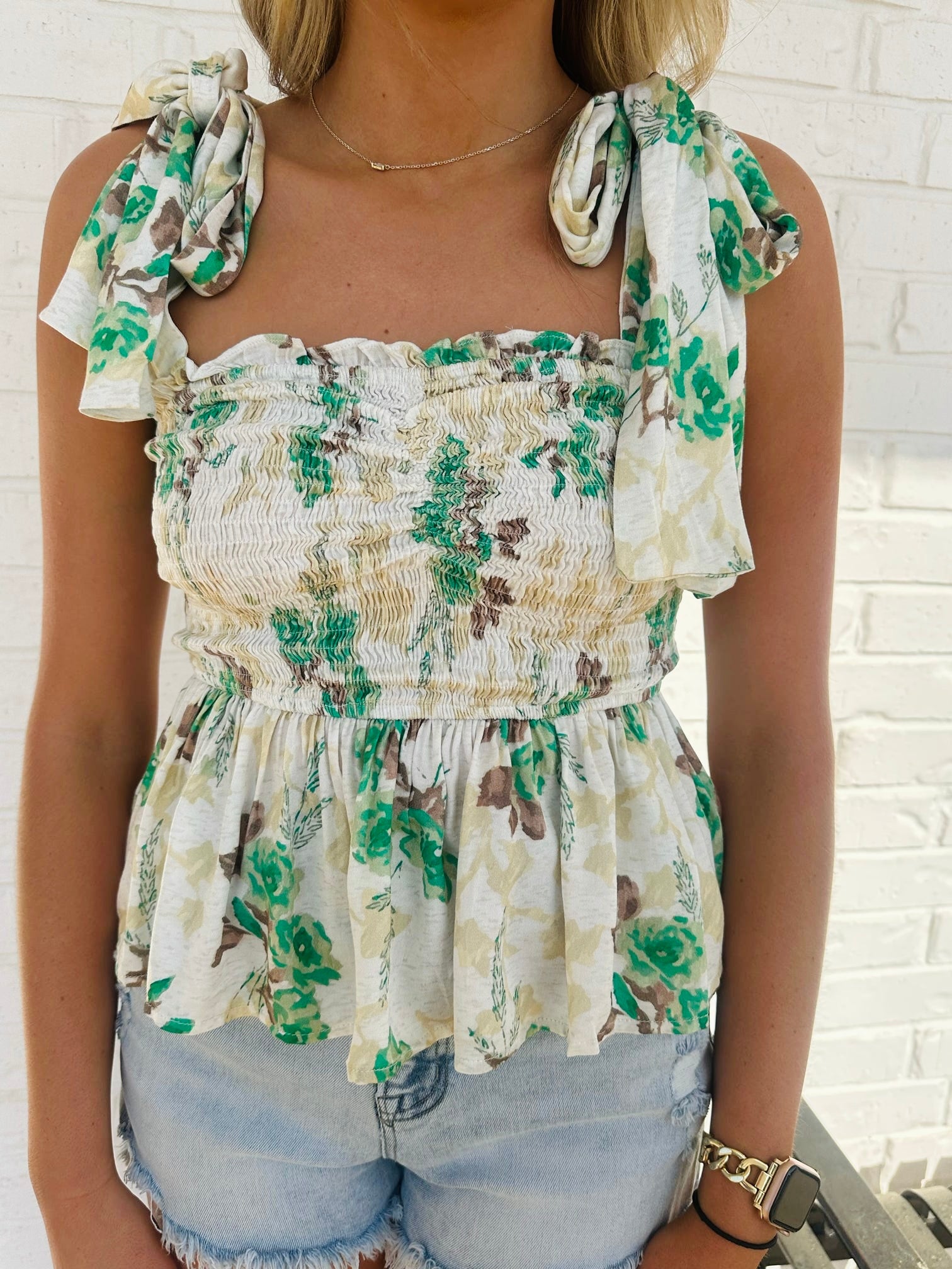 Gracie Floral Tie Strap Babydoll Sleeveless Top
