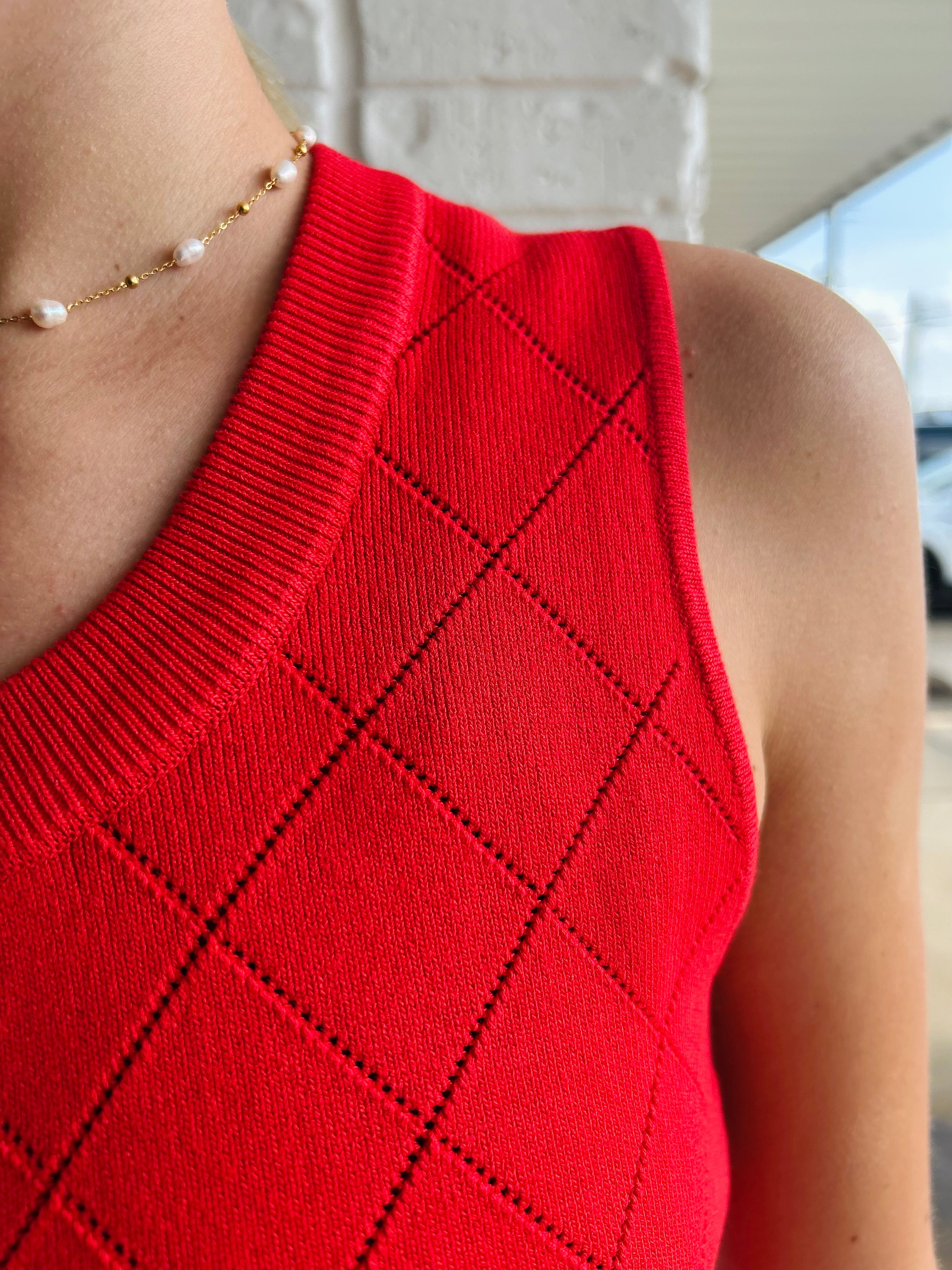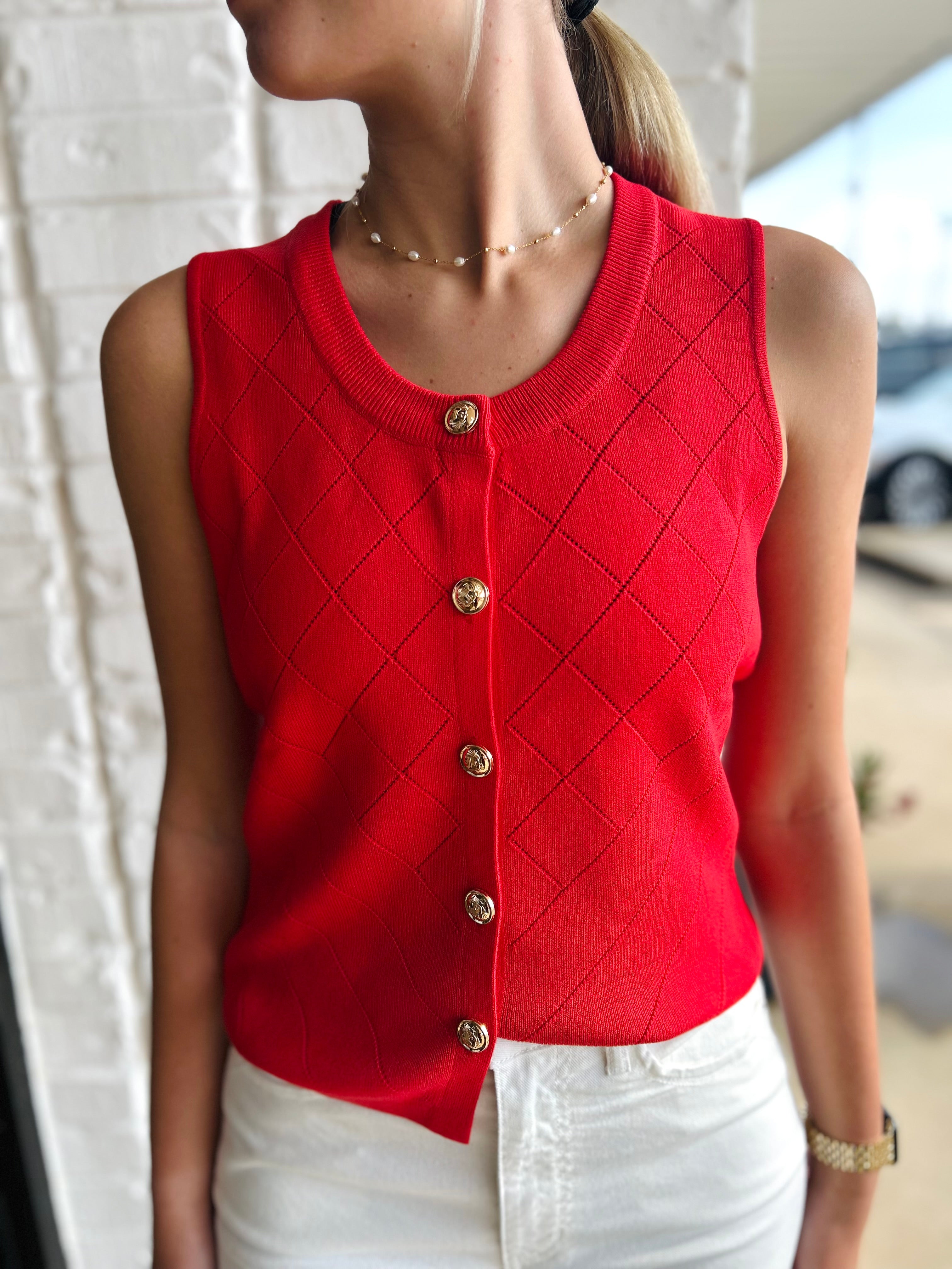Kit Abstract Diamond Knit Sweater Vest w Gold Buttons