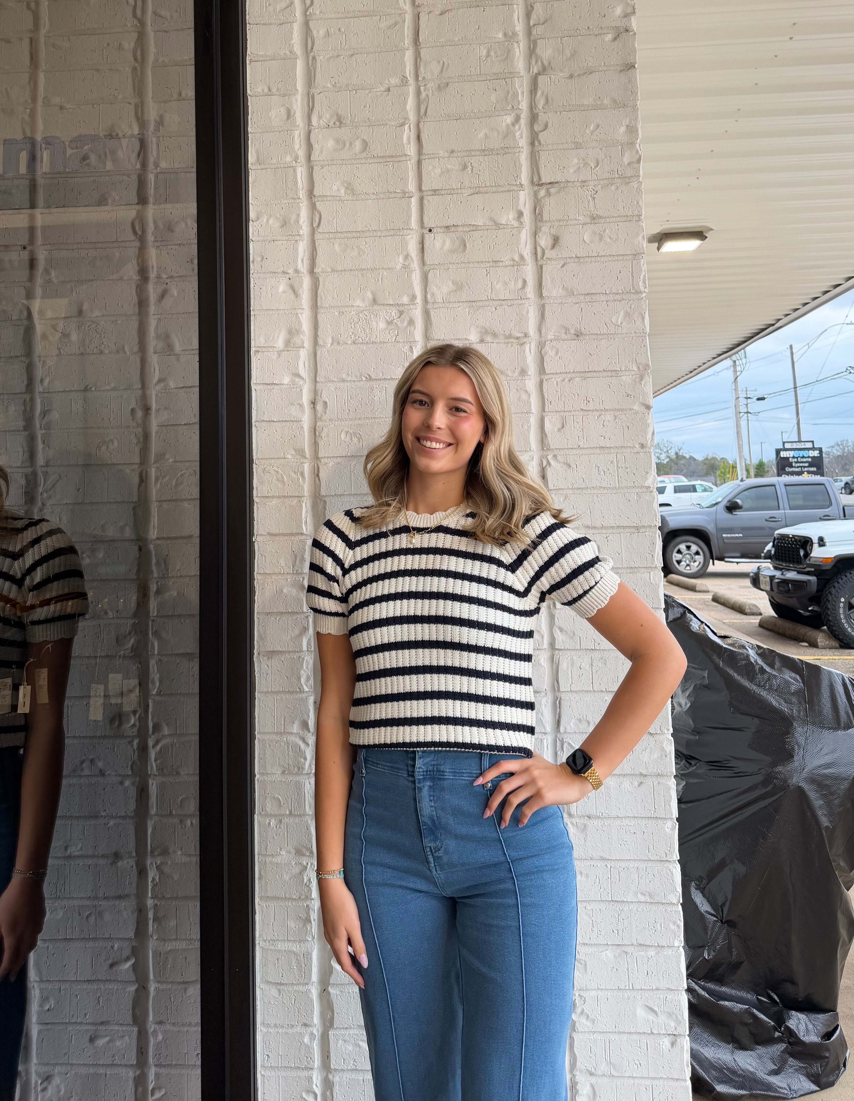 Cassie Crew Neck Monotone Checkerboard Sweater