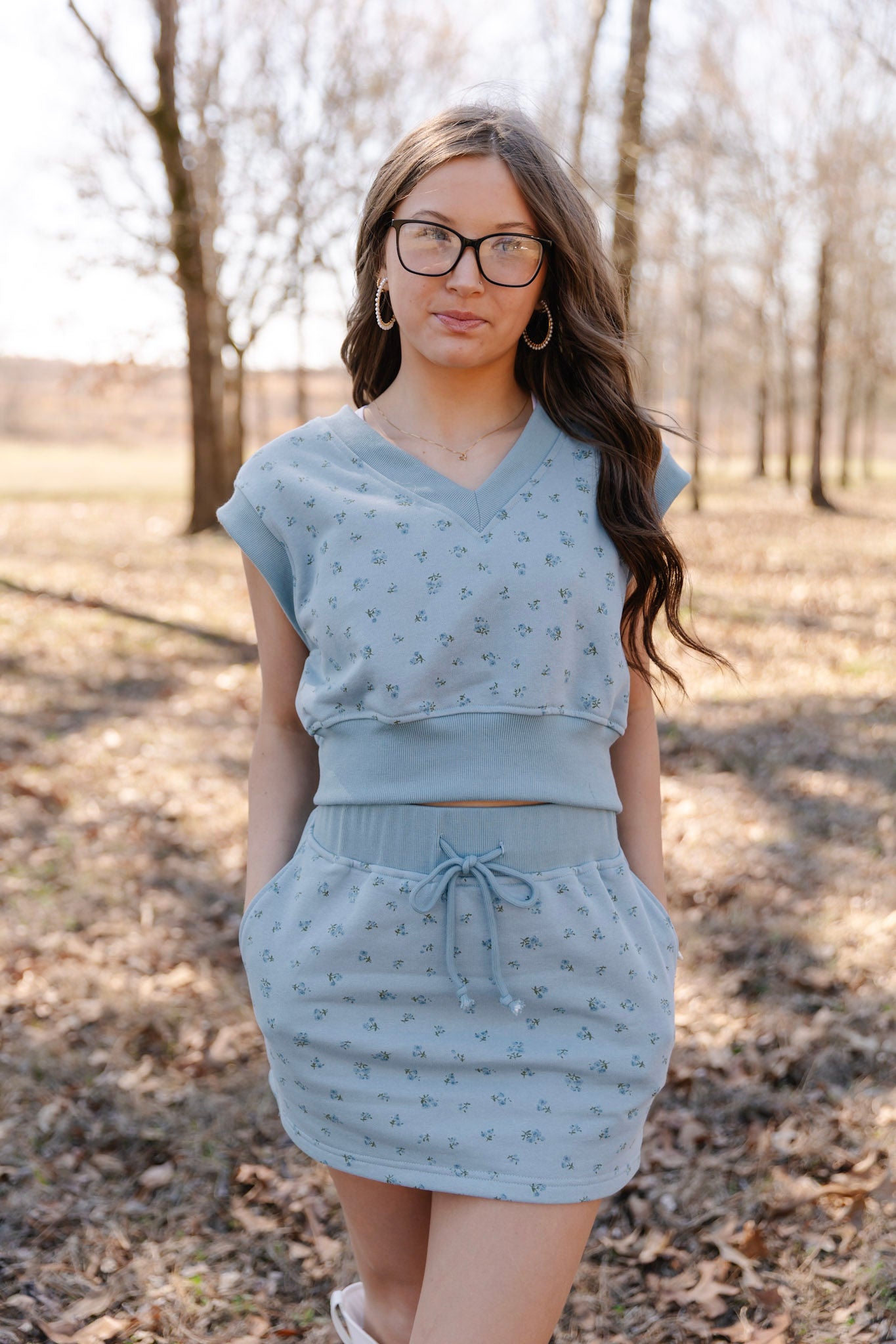 Aubry Floral Knit Sleeveless Top and Skirt Set