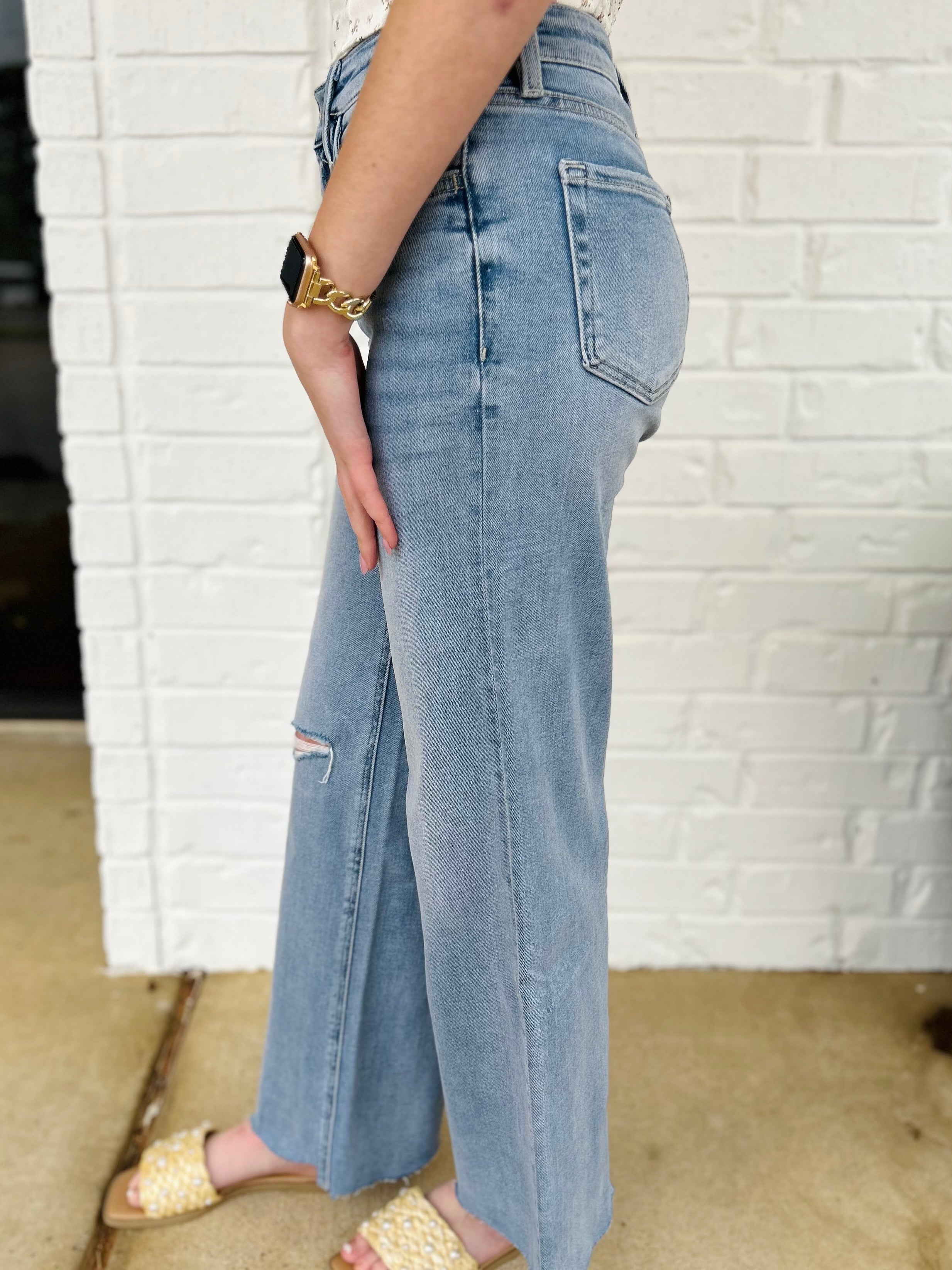 Lovervet Mid Rise Distressed Ankle Wide Leg Jeans