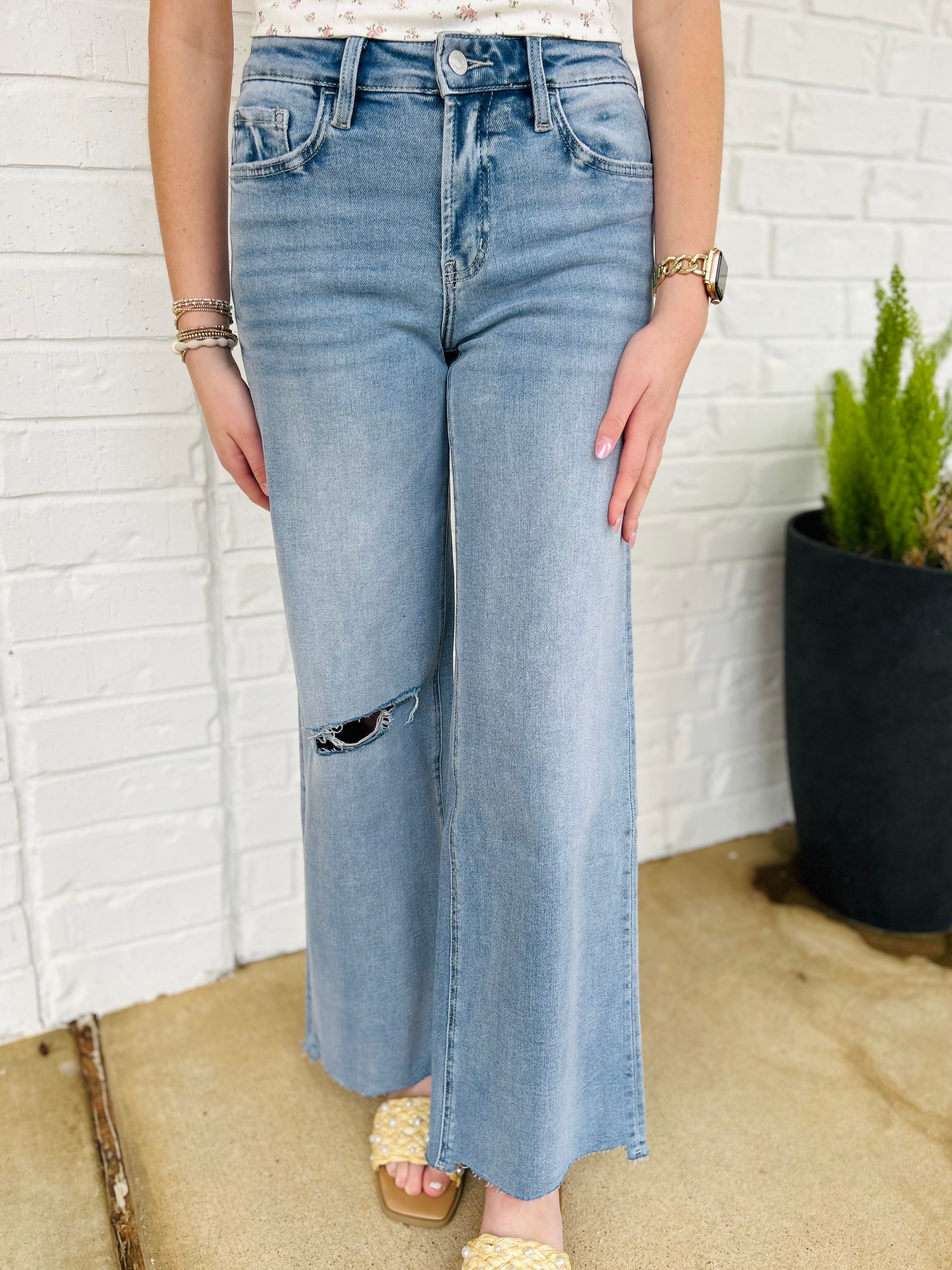 Lovervet by Vervet High Rise Wide Raw Hem Jeans